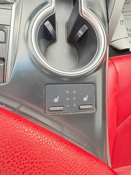 - Comfortable, well-appointed cabin: leather-trimmed seating (Cockpit Red upholstery), heated front seats, an 8-way power driver’s seat with power lumbar, and a leather-wrapped steering wheel.